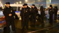 Maafisa wa polisi wakiweka usalama katika eneo ambalo kiongozi wa upinzani nchini Urusi Boris Nemtsov aliuawa
